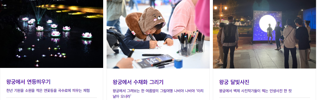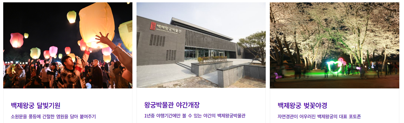 ✅ 행사내용: 백제왕궁(왕궁리유적)을 활용한 8夜를 테마로 공연·체험·전시 등 문화재 야간문화 향후 프로그램 운영